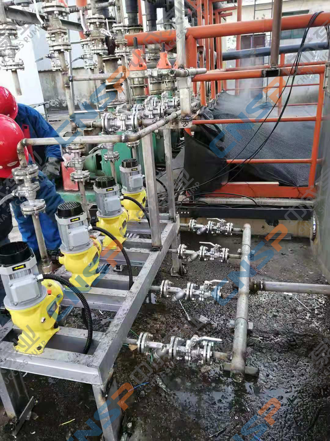 山東臨沂某環(huán)保工程企業(yè)2016年在我廠采購一批立式管道泵離心泵,型號為 IHG50-100,客戶現(xiàn)場測試使用一段時間后反饋不錯。近期再次向我廠采購了一批隔膜計量泵GM-180,用于輸送氨水,目前已安裝使用。